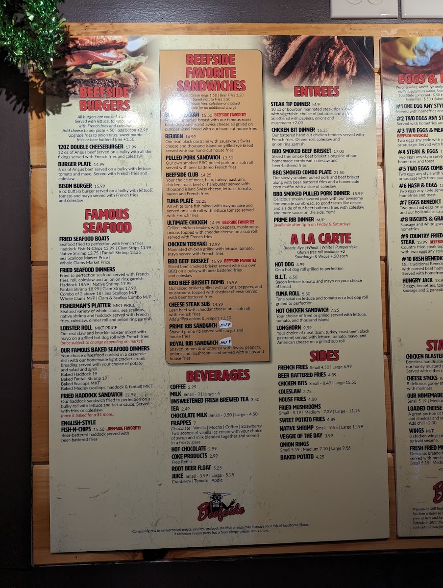 Beefside favorite! Two eggs any style served with a 8 oz. prime rib, homefries and toast.